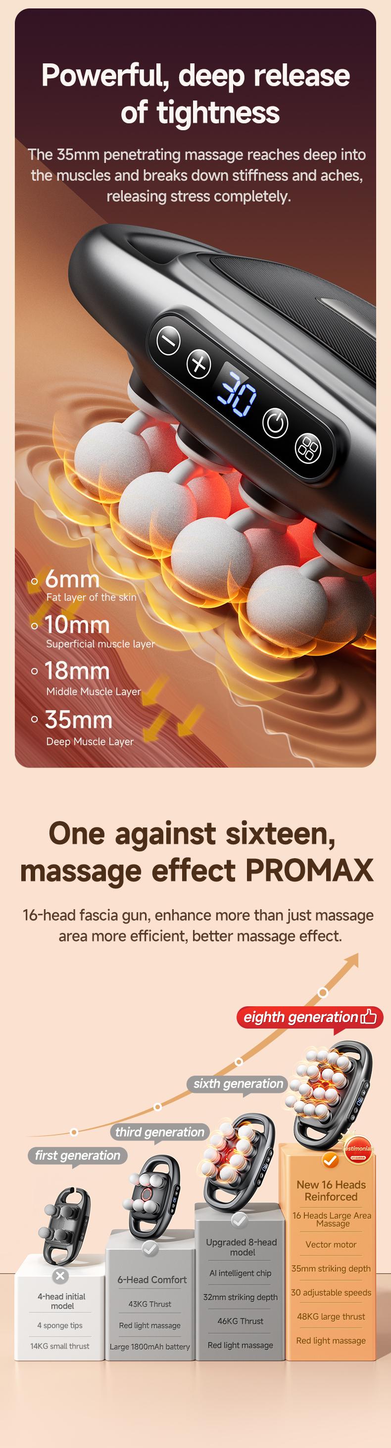 ใ16-Head Deep Tissue Massage Gun for Pain Reliefใ