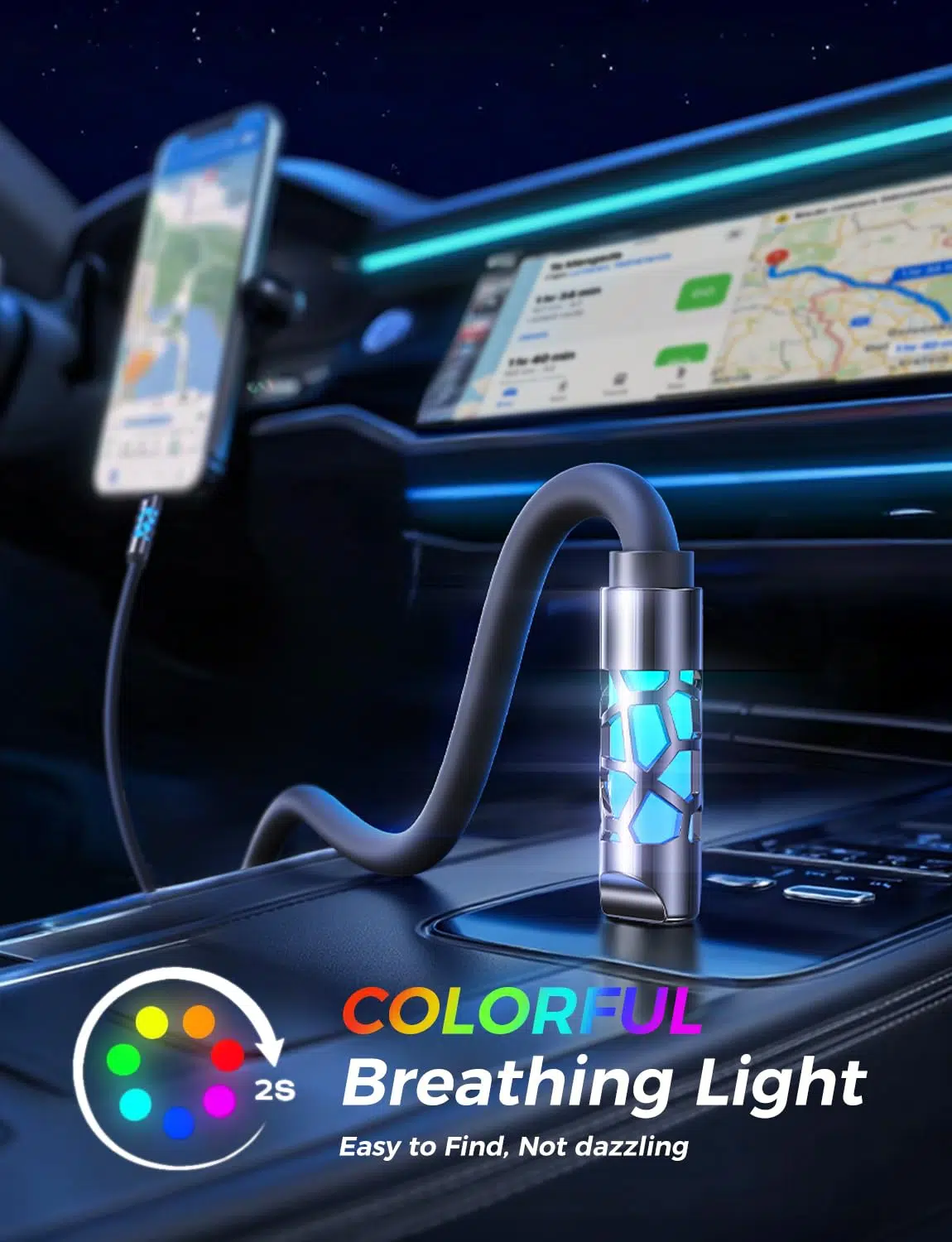 An integrated breathing light softly glows while charging, so you can check your device status at a glance—even in the dark. Perfect for nightstands, car use, or any low-light environment.