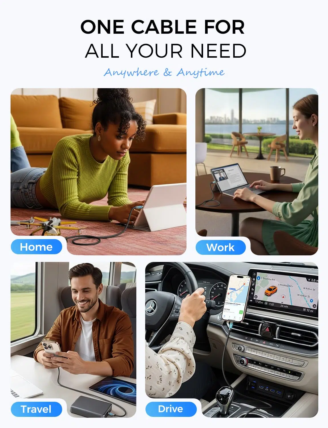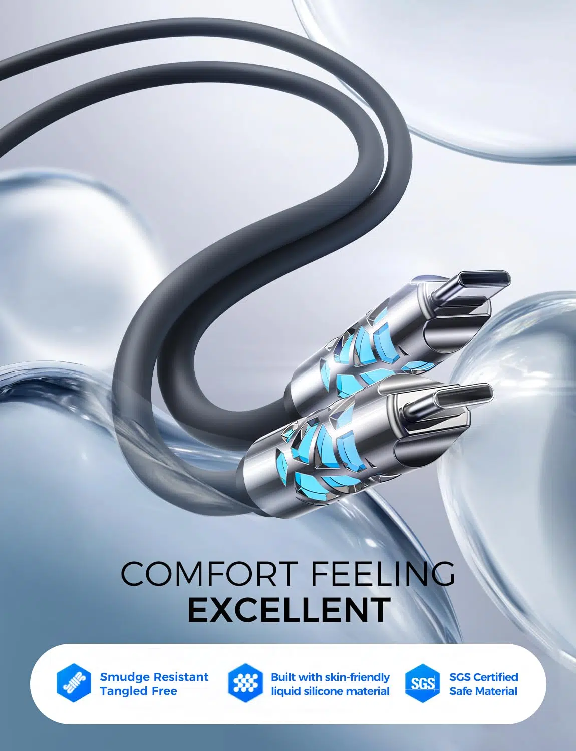 Made from flexible, tangle-free silicone, this cable is designed to last. Reinforced connectors (10,000+ bend test certified) ensure it won’t fray or break with daily use, giving you a long-lasting and reliable solution.