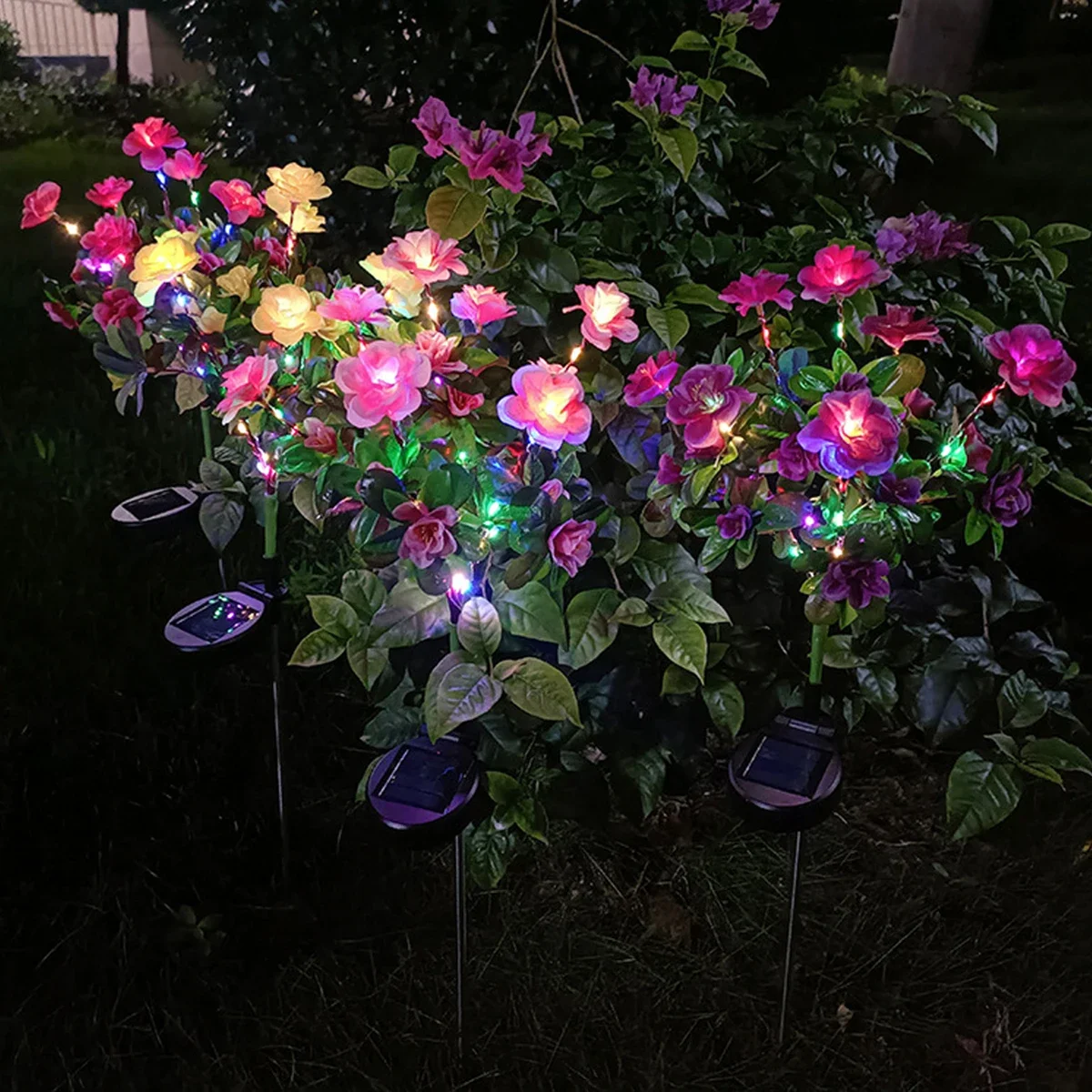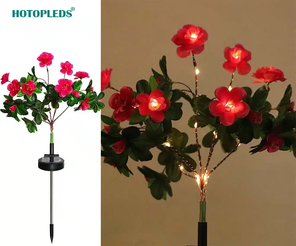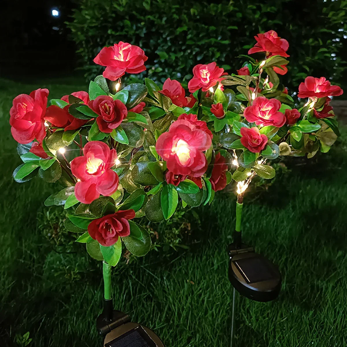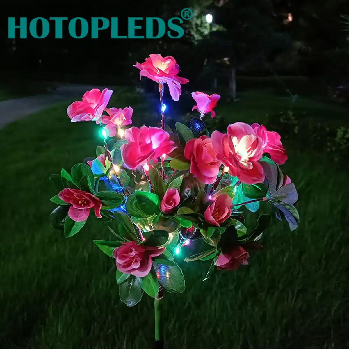 2Pack Sales Outdoor Courtyard Garden Decoration LED Floor Plug Lamp Simulation Flower Lamp, Solar Rhododendron Flower Lamp
