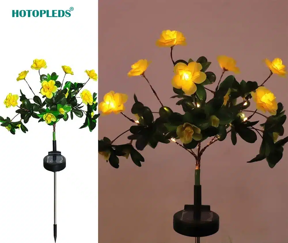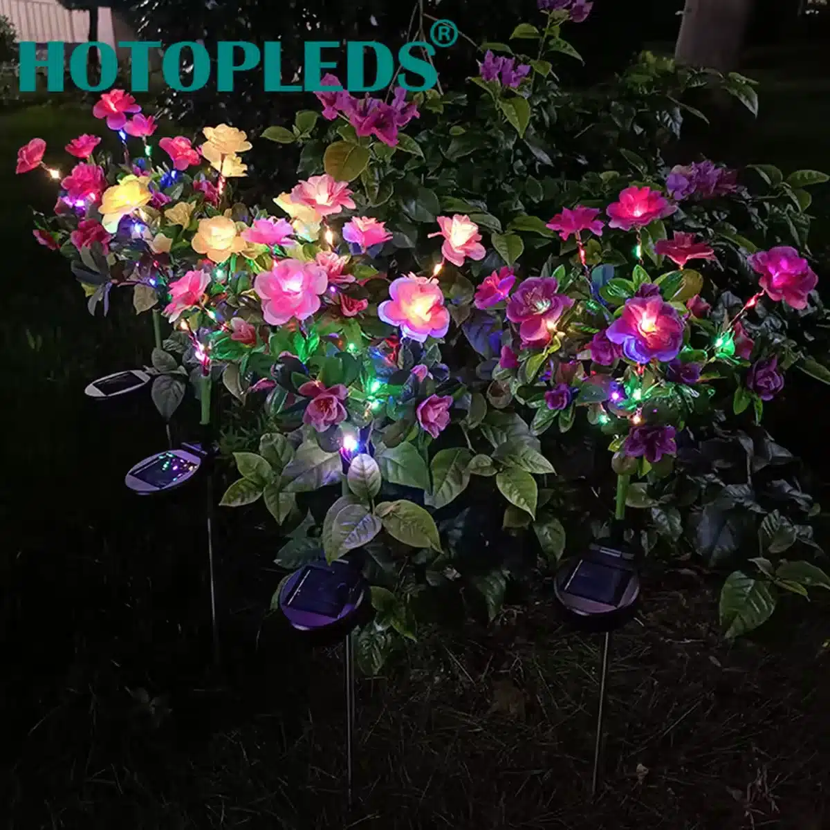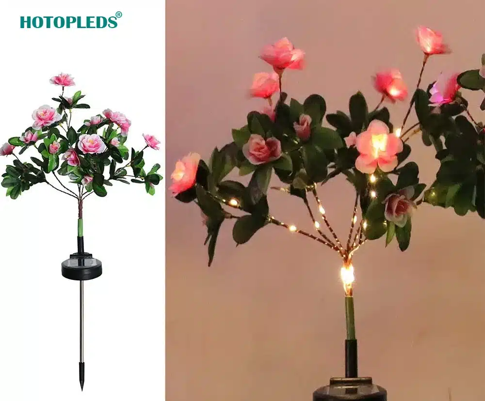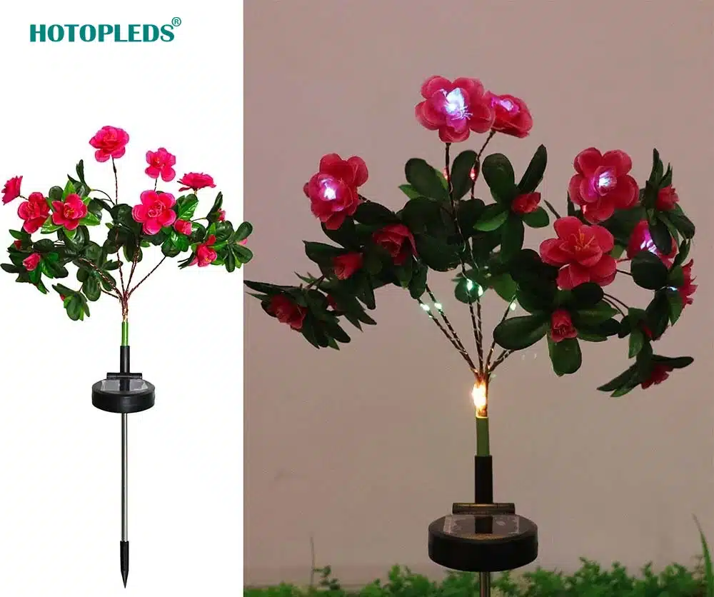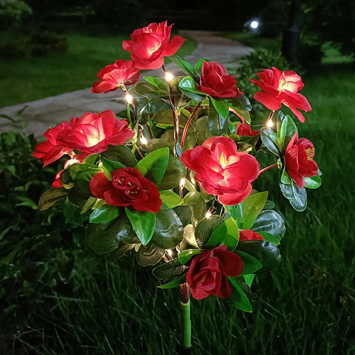 2Pack Sales Outdoor Courtyard Garden Decoration LED Floor Plug Lamp Simulation Flower Lamp, Solar Rhododendron Flower Lamp