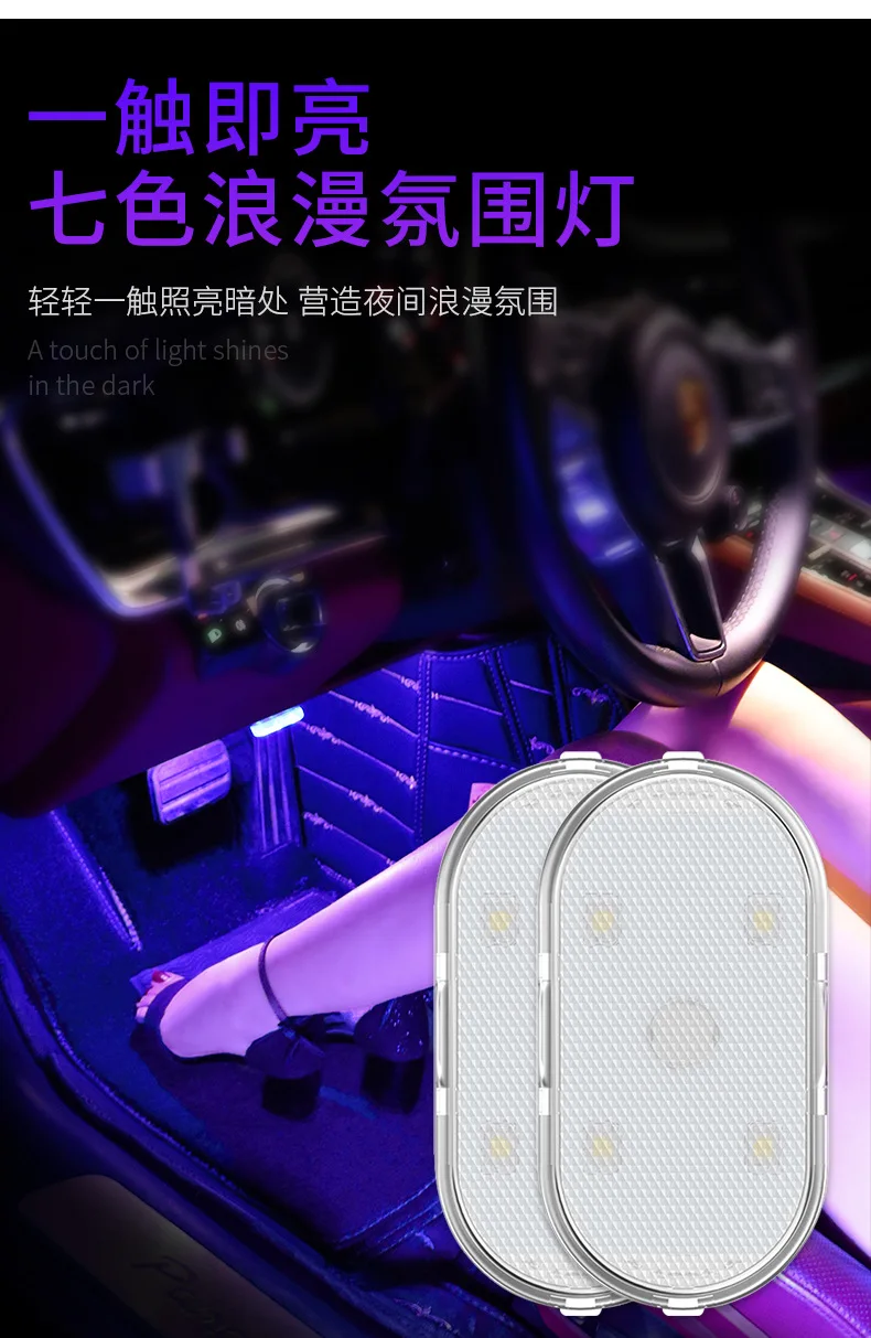 Car LED Touch Lights Wireless Interior Light Magnetic Auto Door Light Roof Ceiling Lamp Reading Lamp USB Rechargeable 5V