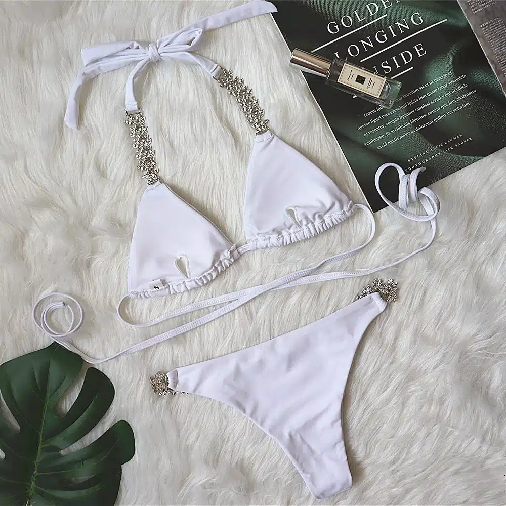 Sexy Design: Cross bandage style with metal diamond details for a bold, fashionable look.