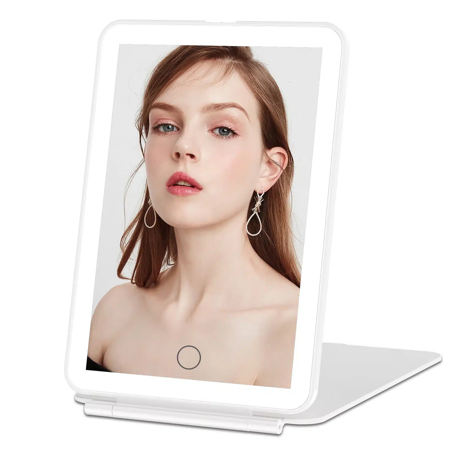 - : This foldable rechargeable mirror with lights is 5*7.5IN 261g, just an ultra-thin iPad Mini Size. The slim, lightweight, compact design makes the Eclipse your new travel buddy