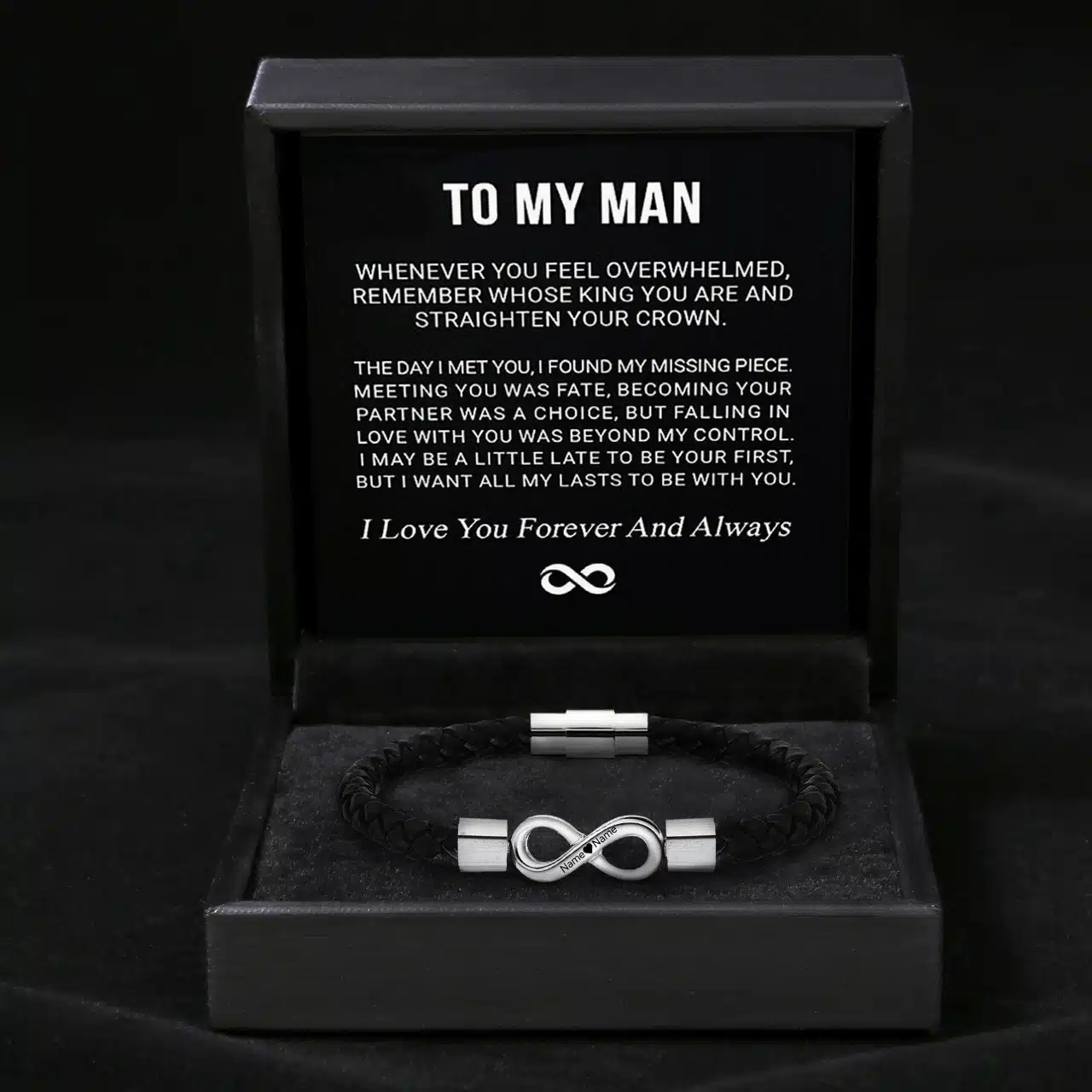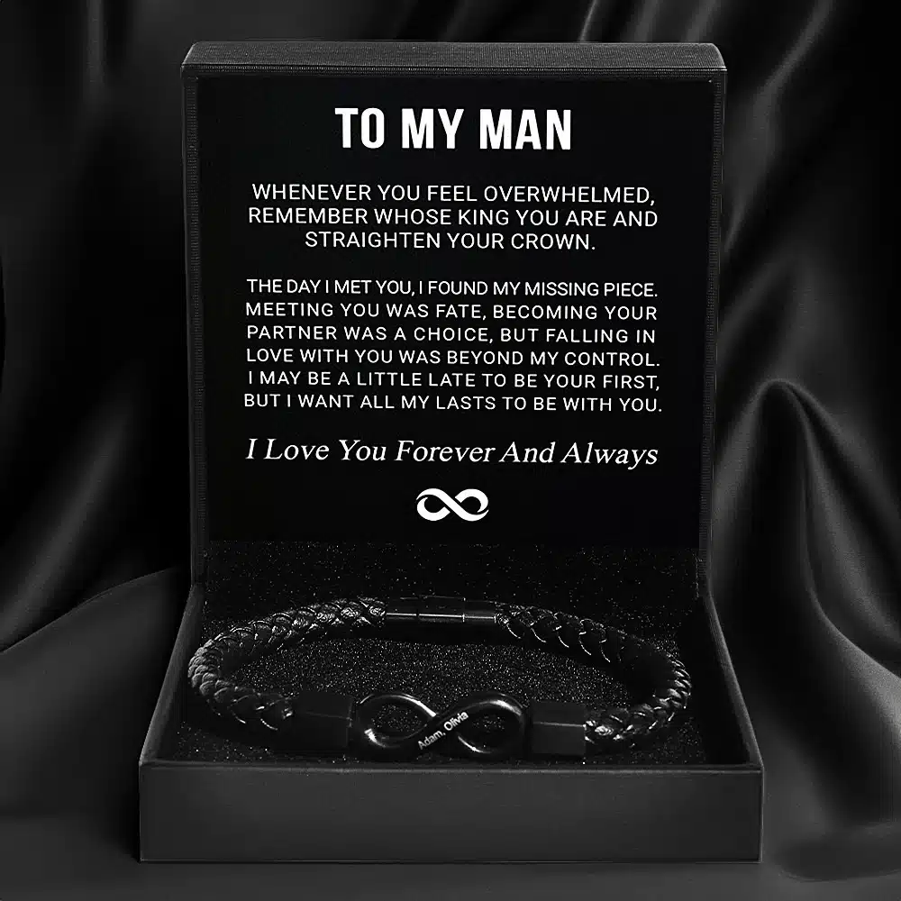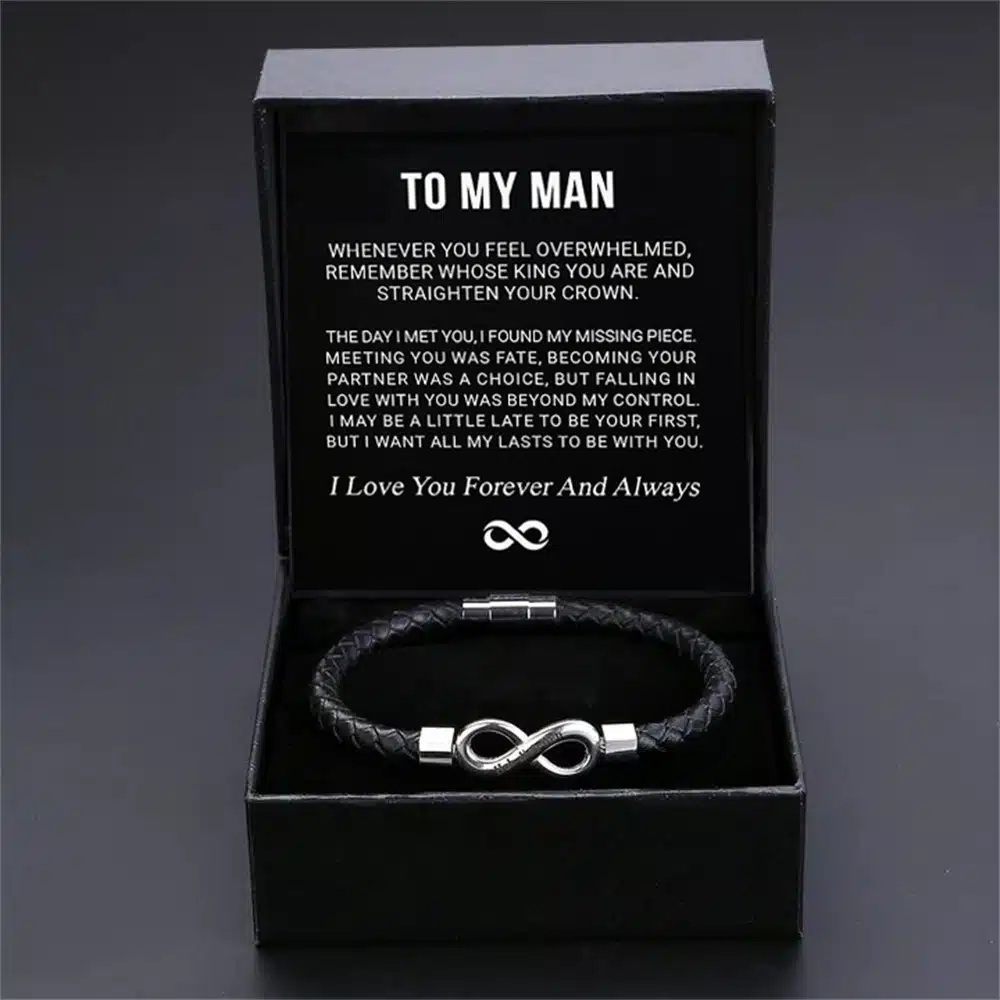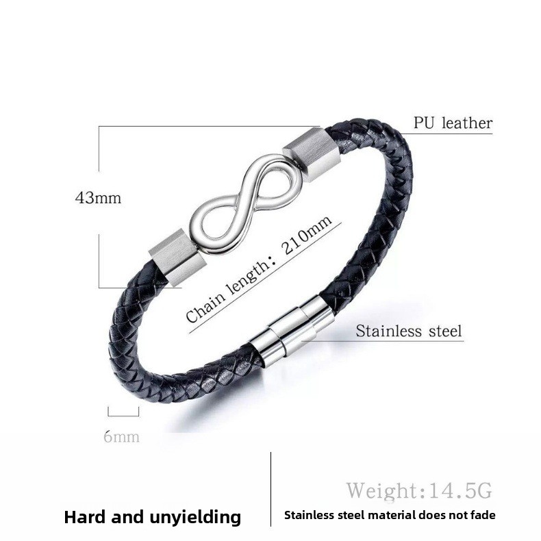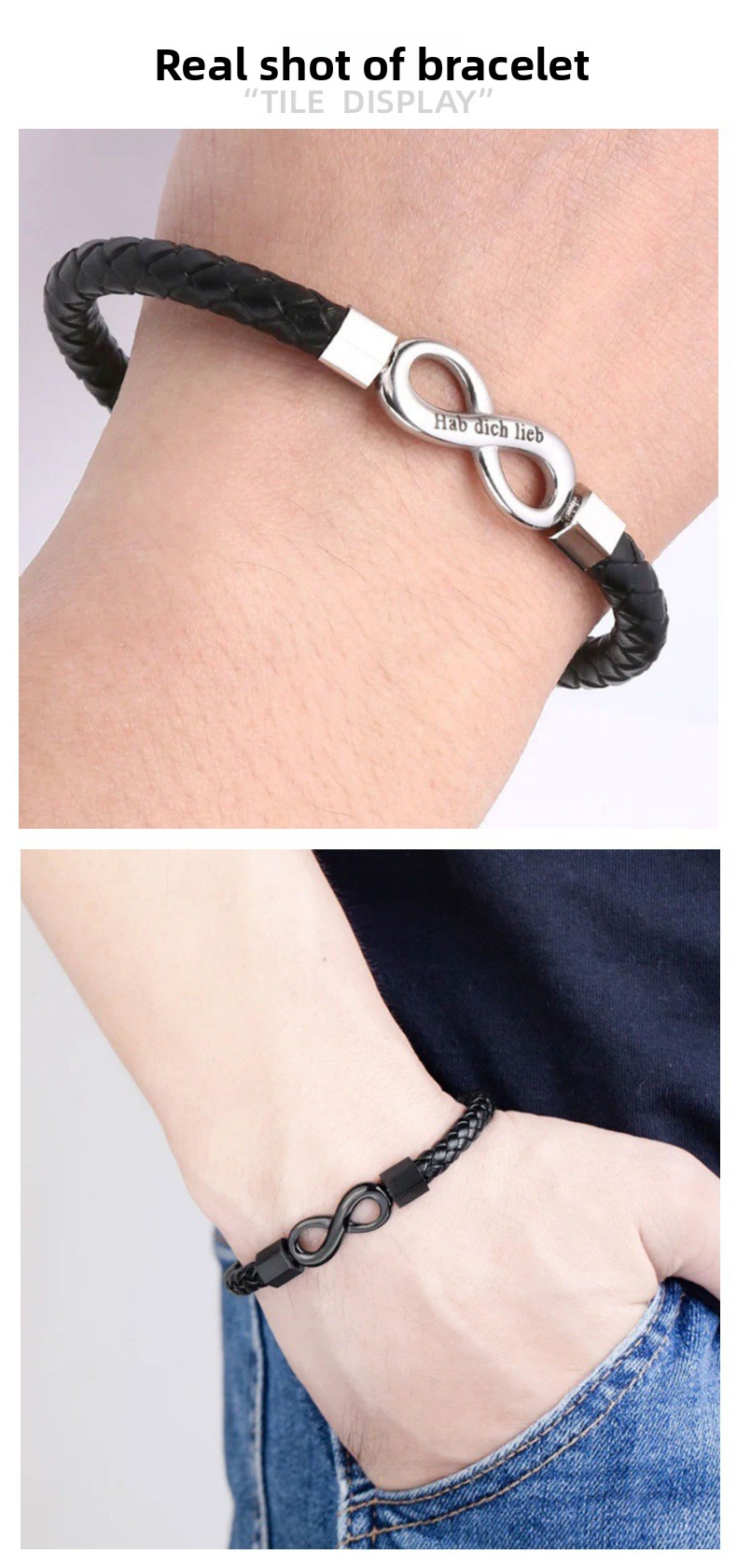 Engraved Stainless Steel Leather Bracelet with Magnetic Clasp