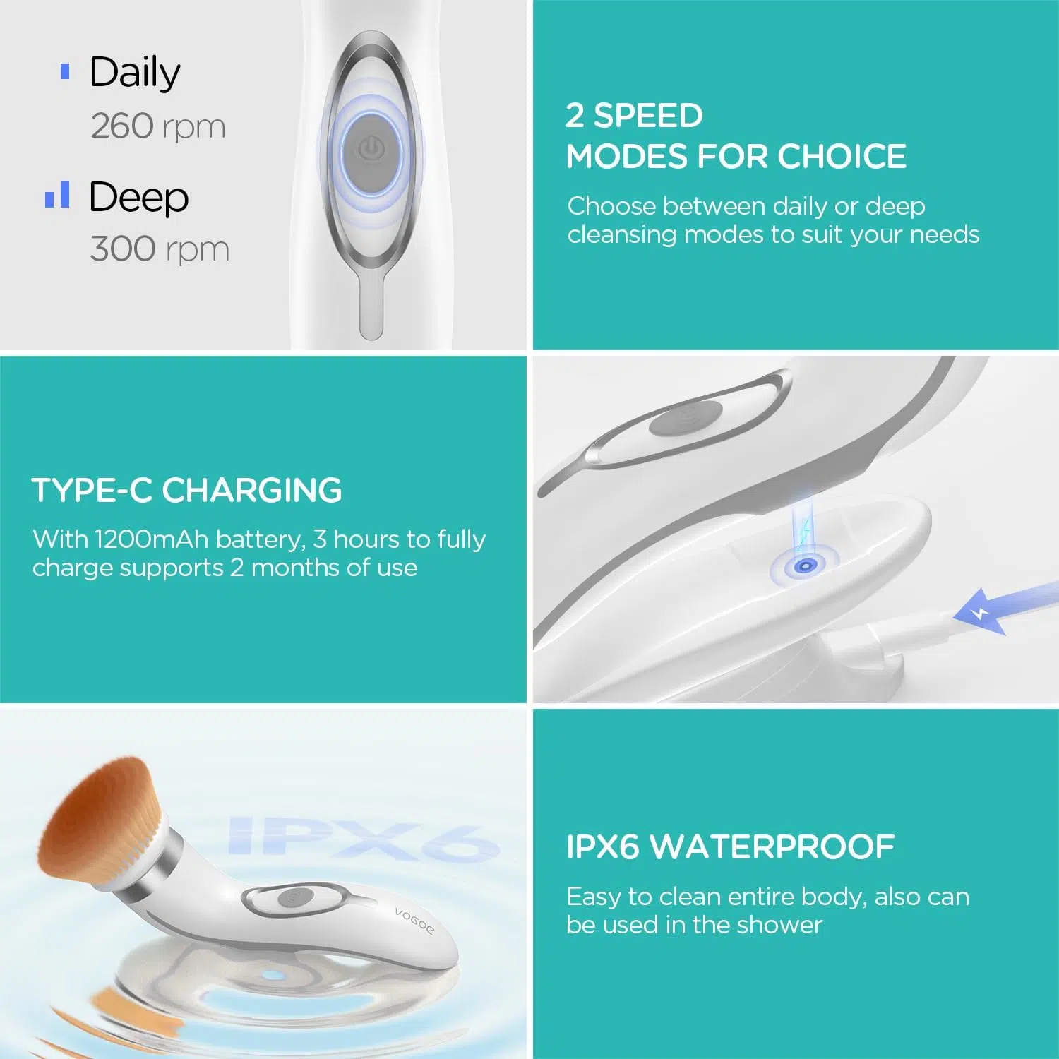 • Two-Speed 360ยฐ Rotation โ€“ Powerful rotation allows for thoroughly removing the dirt, oil, blackheads and makeup residue, 2X more effective than hands. The two speeds are designed for daily and deep cleaning respectively, choose any mode according to your different needs.