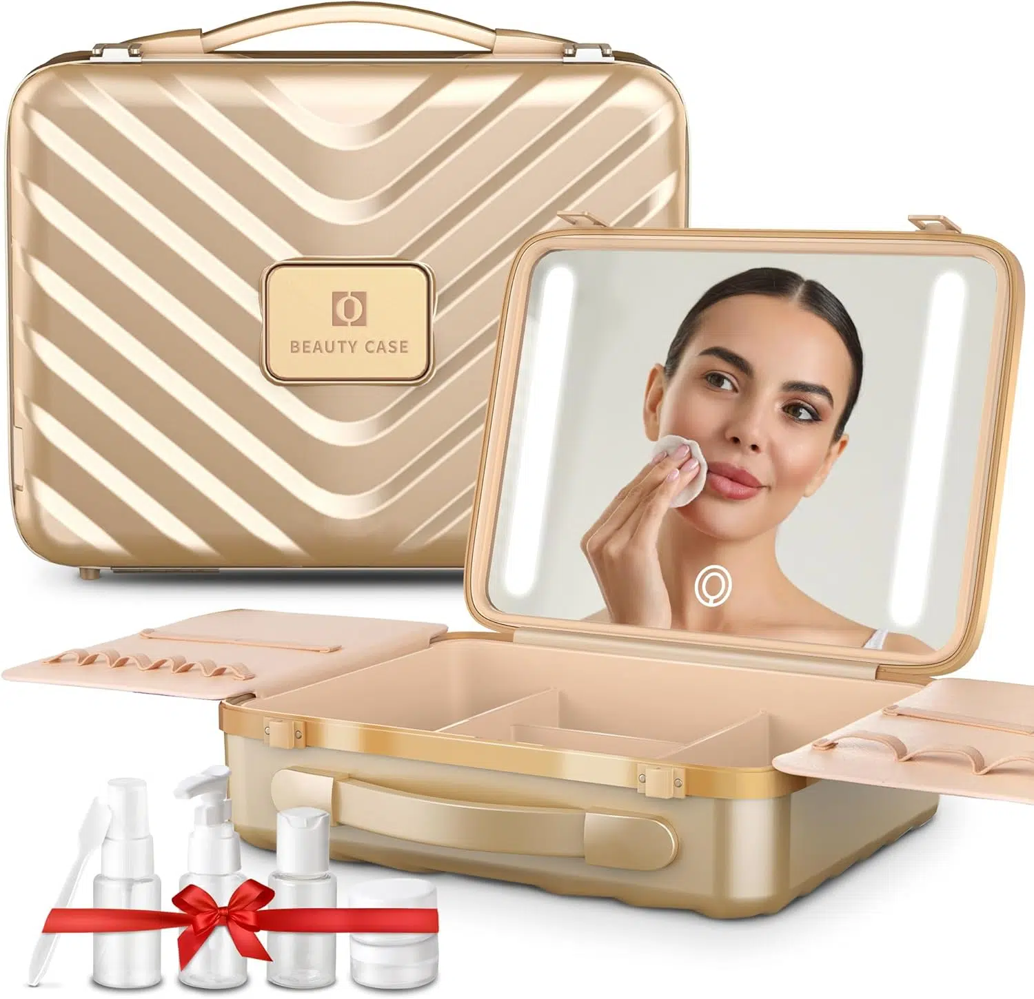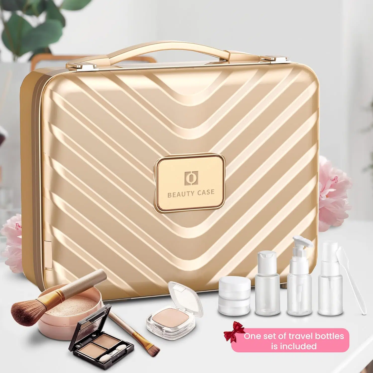 Elevate your beauty routine with our makeup case, complete with a set of travel bottles, making it the ultimate accessory for beauty enthusiasts everywhere.