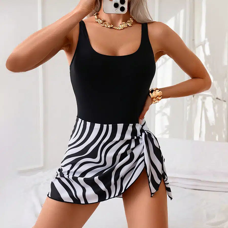 Women’s Printed Swimsuit & Pleated Skirt Set
